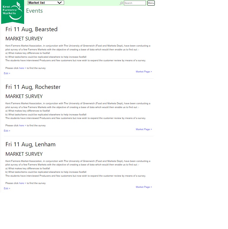 Note:- By the use of attractive images, map and local knowledge you are able to make your Market and Producer web pages stand out and promote both the location and the market.